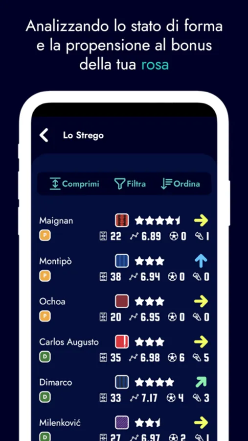 Lo Strego è la prima App che attraverso un algoritmo è in grado di aiutarti a schierare la formazione del fantacalcio.