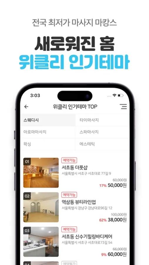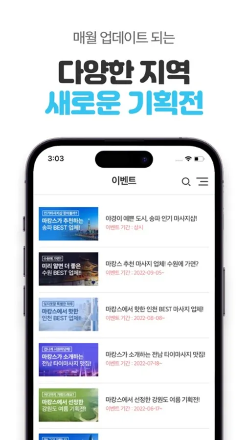 * 전세계 약 3000개 전국 마사지샵과 제휴중 (2022 .09.01 기준)