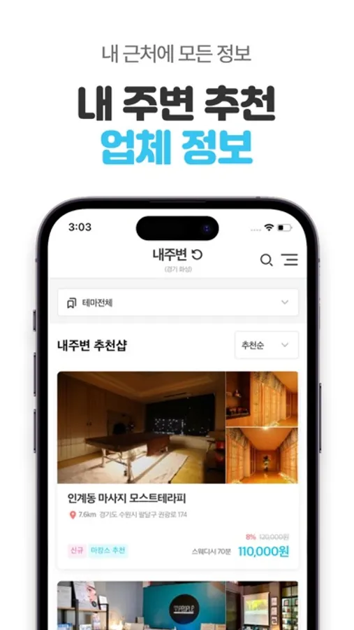 [내 주변 기능을 통해 가장 가까운 테라피샵을 찾을 수 있습니다.]