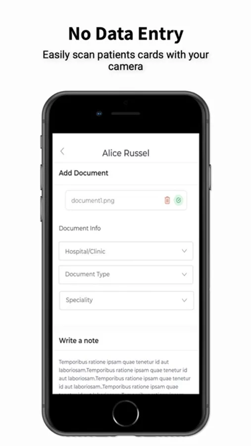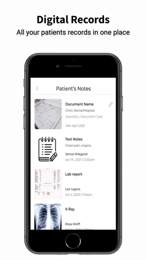 - Securely and easily keep track of your patients' records in a digital format. No tedious data entry or long typing involved