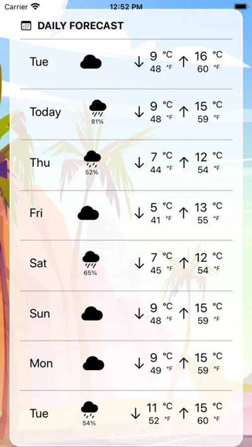 UnityWeather is a simple weather app for your phone. What makes it unique is that it shows the measurements in both metric in imperial.