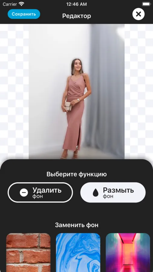 Удалить фон, Заменить или сделать его размытым все это можно сделать с помощью приложения AIBackground за считаные секунды в одно касание.