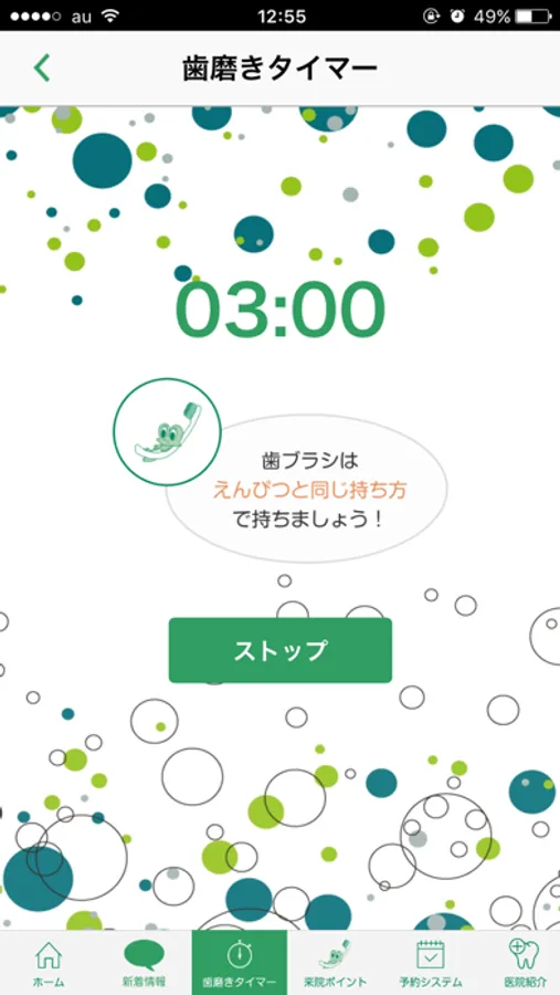 来院ポイントや歯磨きタイマーなど、アプリならでは限定サービスが搭載されています。
