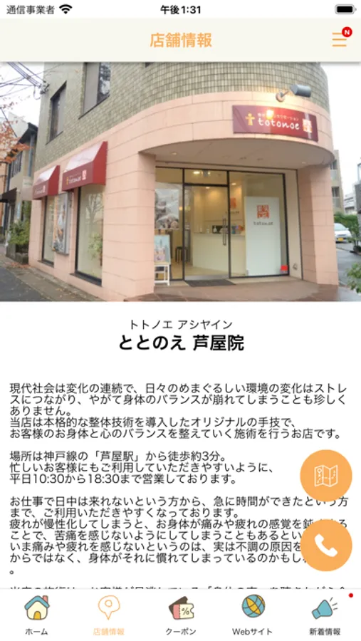店舗のマップが表示され、地図アプリとも連携しているので、初めてのご来店の時も簡単に見つけることができます。