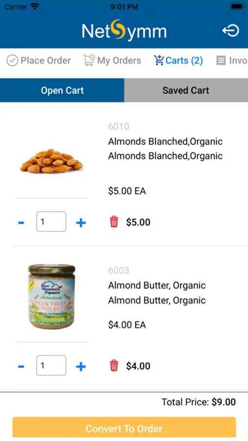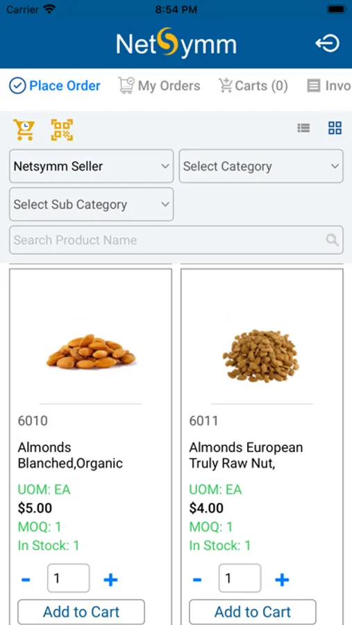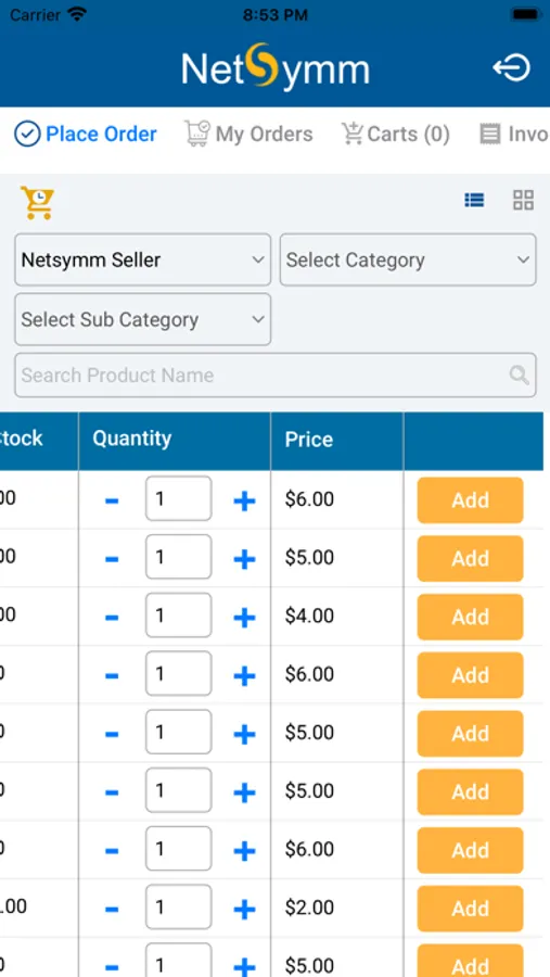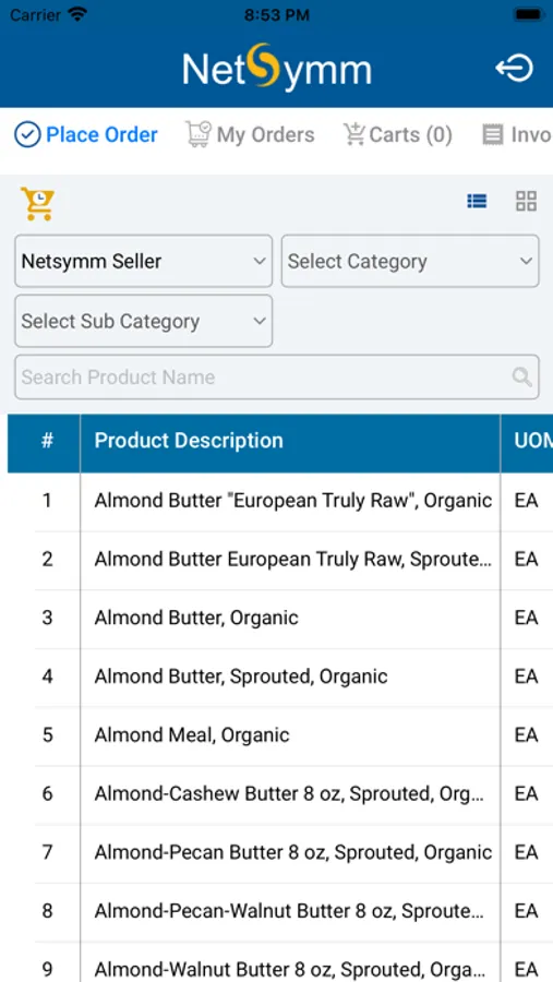 Login and view the online catalog via list view or image view. Search by category and subcategory, and add products to your cart. Click the Carts icon on the top, and Click Convert to order.