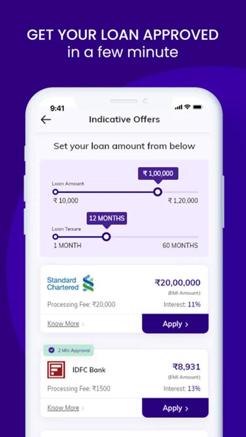 • Instant Loan approval on the go via in-built AI based decision engine.