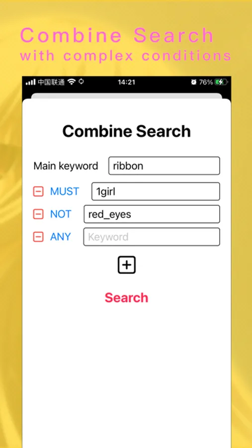 Conditions like "NOT contains", "MUST contain", "contains ANY one of" specific keywords to filter searched content view.