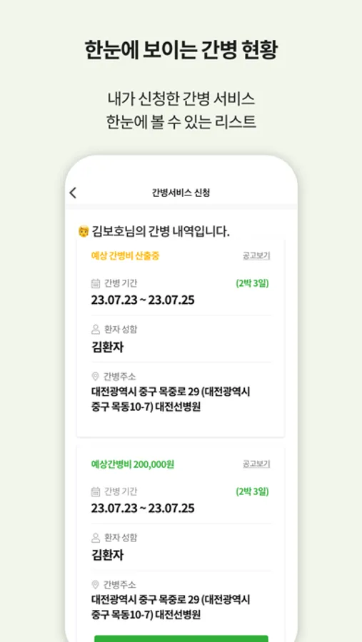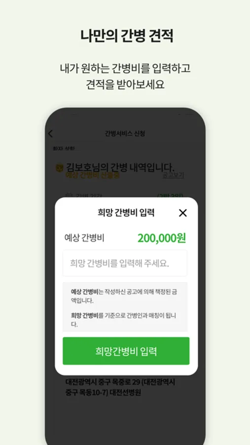 전국 어디서나 간병인이 필요한 사람에게 자신에게 맞는 간병인을 연결해주는 앱입니다.