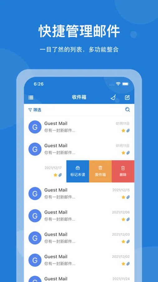 Guest Mail是一款轻量化,简洁美观,无广告的移动端邮箱客户端,可快速管理多个邮箱,对邮箱进行回复、转发、删除等操作。客户端采用端到端加密技术对用户数据进行保护,并且支持MFA双重身份认证方式验证用户身份。