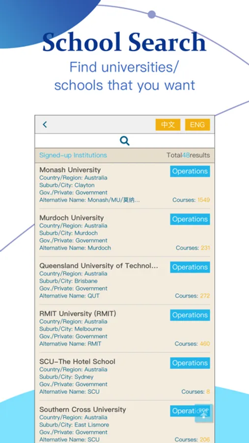 CatEight has collected data from universities, colleges, secondary schools, primary schools, and language schools in Australia, New Zealand, Singapore, and more countries and regions. Each educational institution is introduced with details, including courses, cities, campuses, contact numbers, emails, the official website, related news, etc., which not only helps students and education agents quickly find the right educational institution but also gives educational institutions a chance of reaching out to more prospective students.