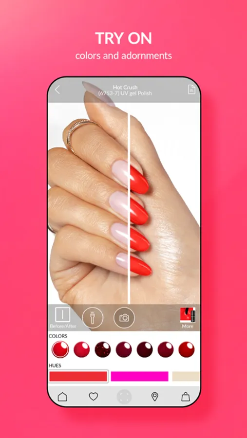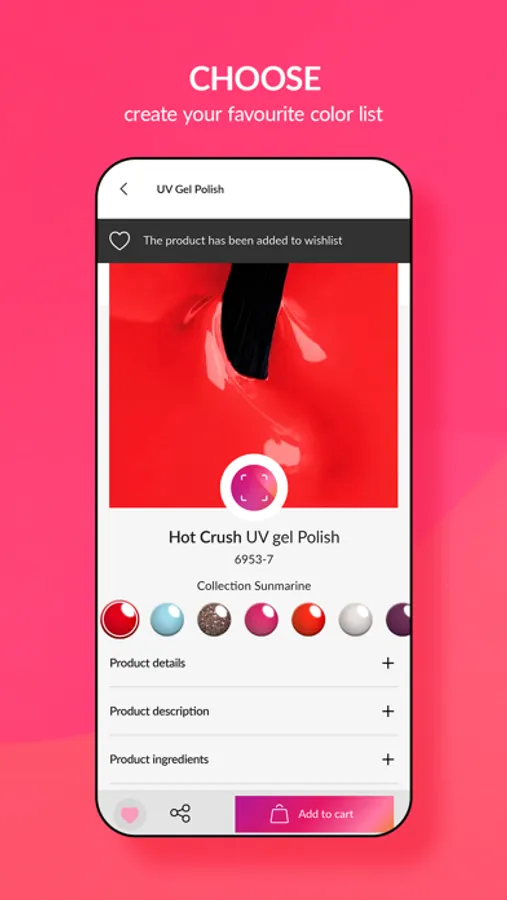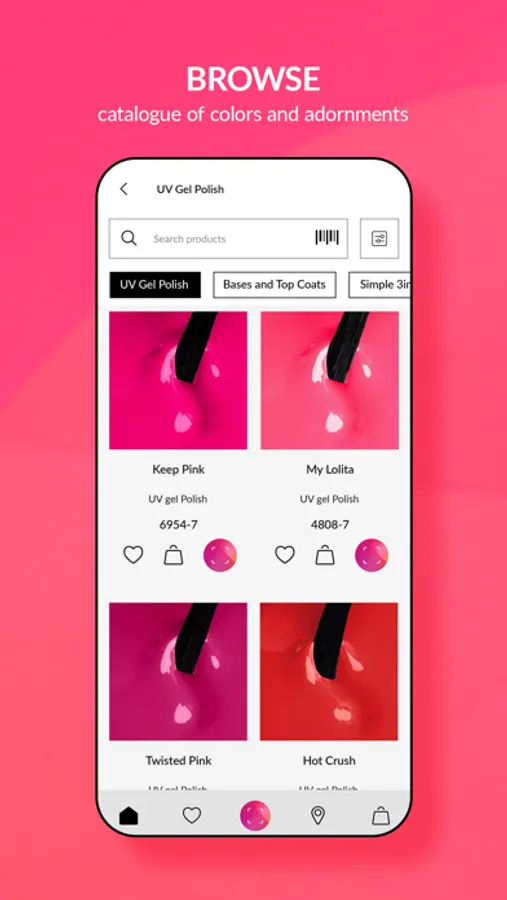 ● Try on products in the fitting room - play with colors, effects of decorations and match the right shades to yourself and your style! You don't know if a given color will match your outfit well? Take a picture of your hand with a virtual nail polish applied and send it to your friend.