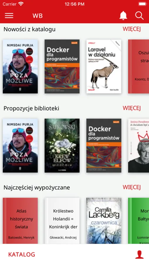 Aplikacja w pełni obsługuje katalog biblioteki oraz konto czytelnika biblioteki.