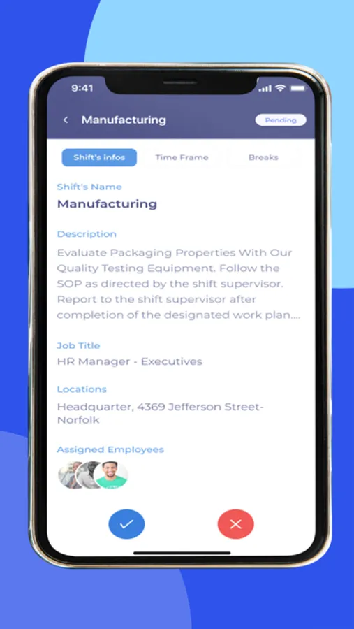 - Check assigned shifts, accept or reject shifts using your personal device