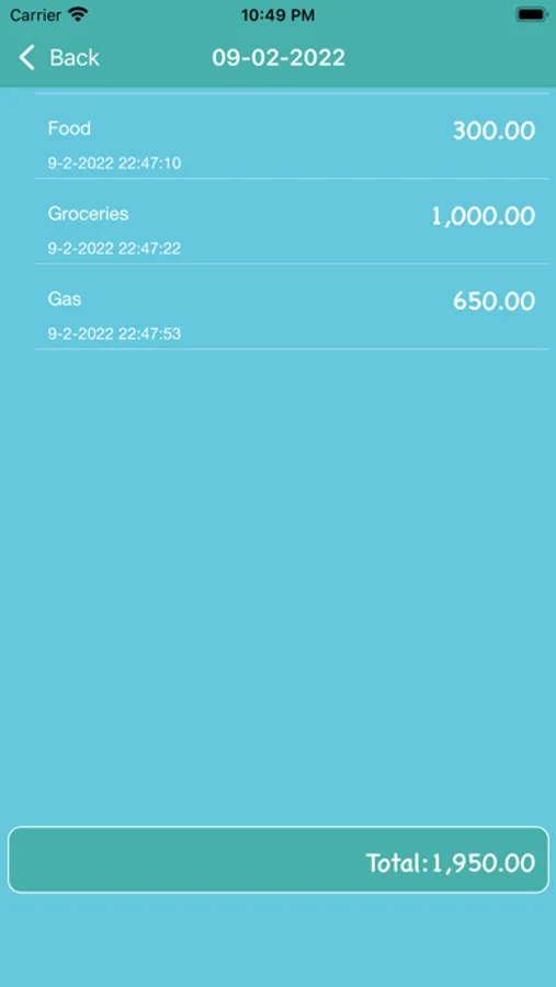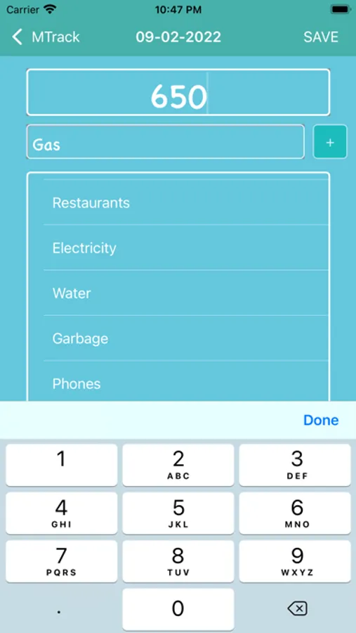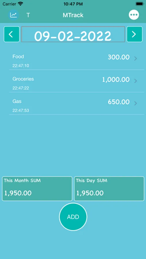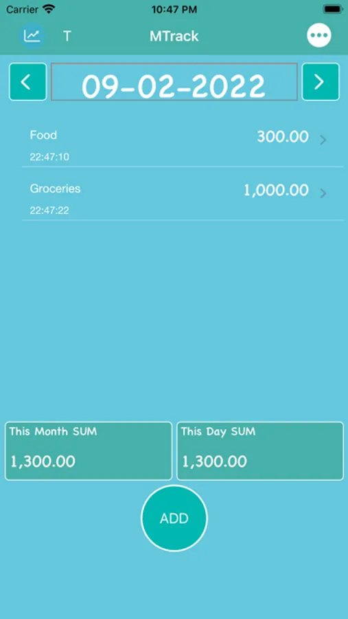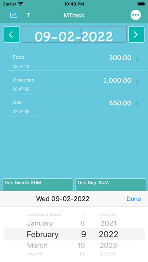 Track Month App has an option to add all your spending of the day. App provides a feature to switch between the dates to add your spending easily.