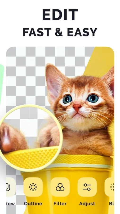 Erase unwanted background from photos, save images with transparent background or change it to the one you need with an intuitive all-in-one app. Apply filters, draw, add text and stickers to create original pictures, professional product images, eye-catching posts/stories photos and unique avatars.