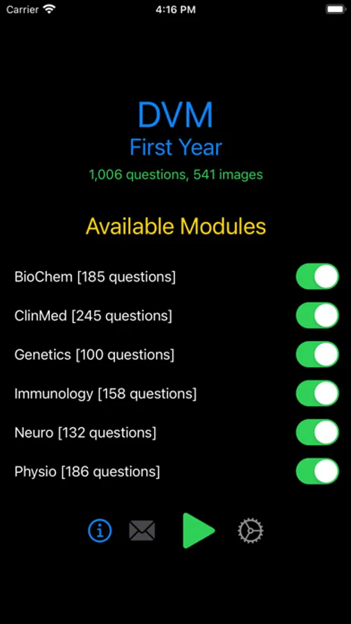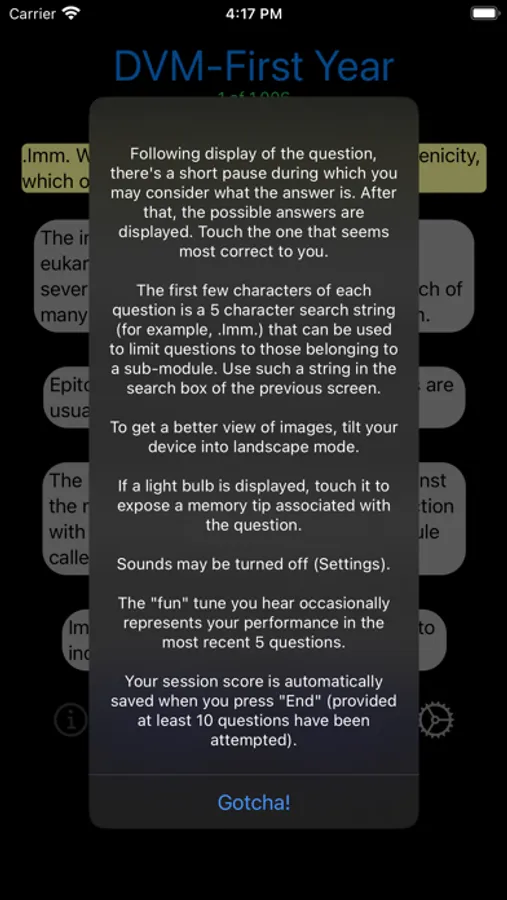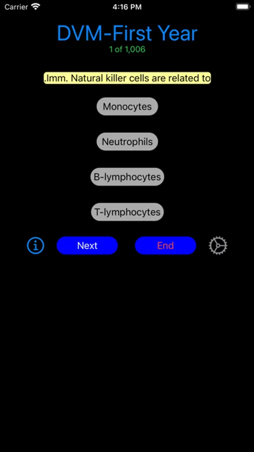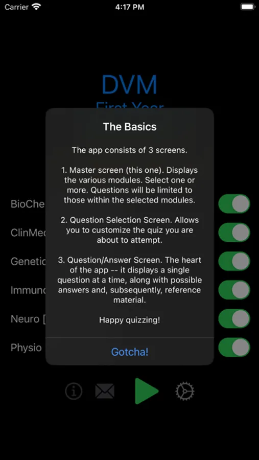 Quizzes on subjects studied in a typical Doctor of Veterinary Medicine (DVM) First Year program