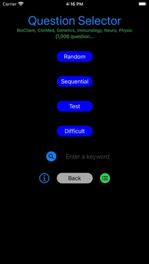 Various modes. Sequential, Random, Test, Difficult, Keyword