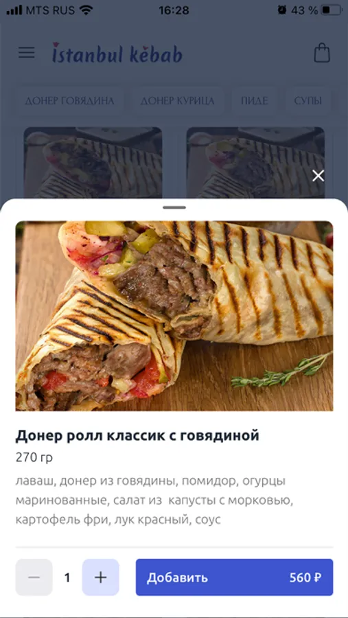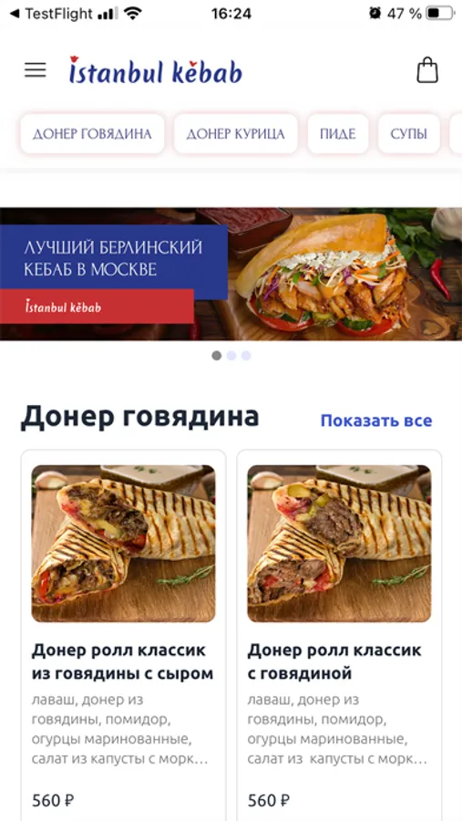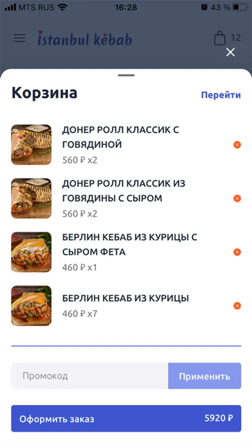 Приложение по заказу блюд ресторана IstanbulKebab. Возможность познакомиться с меню ресторанов, сделать онлайн заказ и использовать акции и предложения бренда.