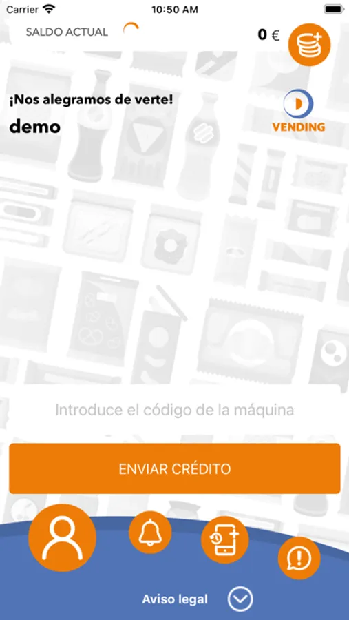 *Si no dispones de NFC, abre la APP e introduce el número de la máquina en la que vas a consumir. Se enviará tu saldo y podrás seleccionar tu café, snack o bebida preferida.