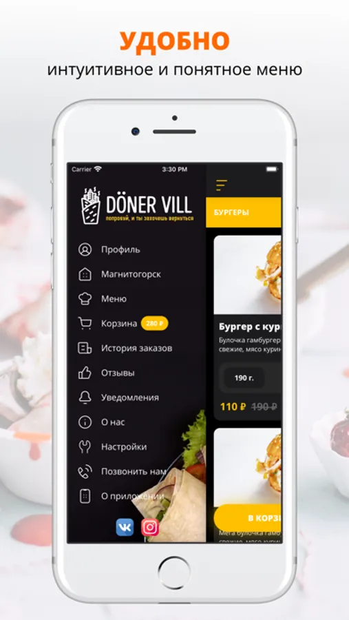 Приложение Doner Vill — это удобный способ заказа еды домой или в офис! Мы готовим наши блюда из качественных свежих ингредиентов и доставляем еду быстро и бережно. Выбирайте и заказывайте вкусную еду с доставкой всего в несколько кликов!