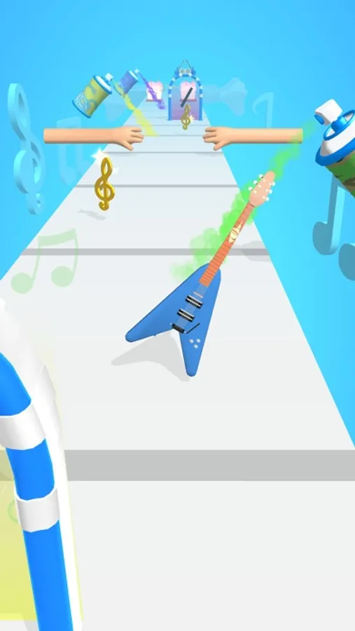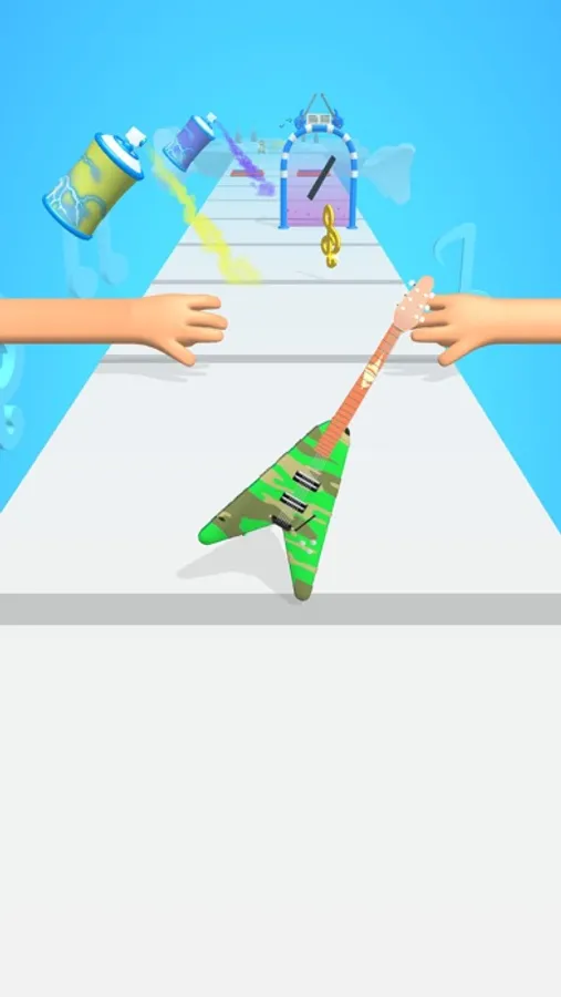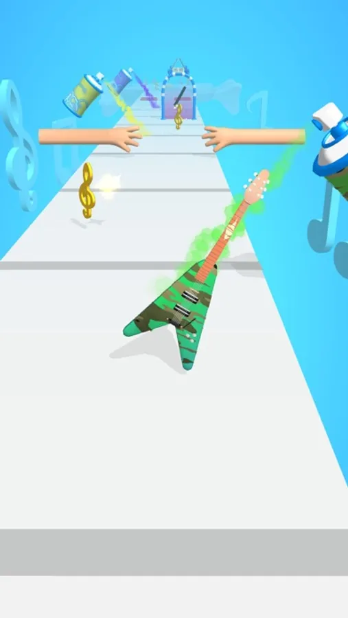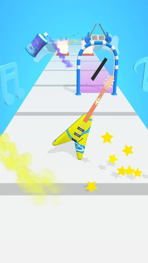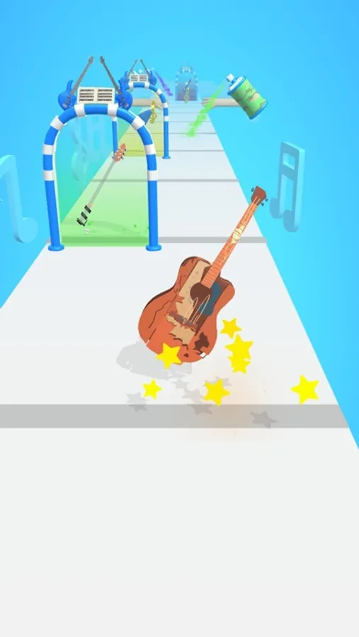 Collect treble staffs to repair, go through gates to choose guitar body shapes, and use spray paint cans to colour!