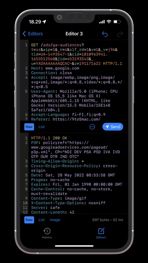 • Syntax highlighting HTTP message editor