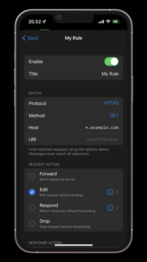 • Drop matched requests and responses
