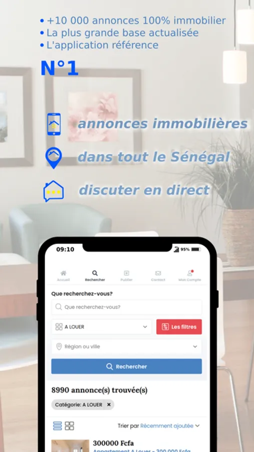 Plus de 10 000 annonces régulièrement actualisées, la plus grande base d'annonces au Sénégal pour vous faciliter votre recherche.