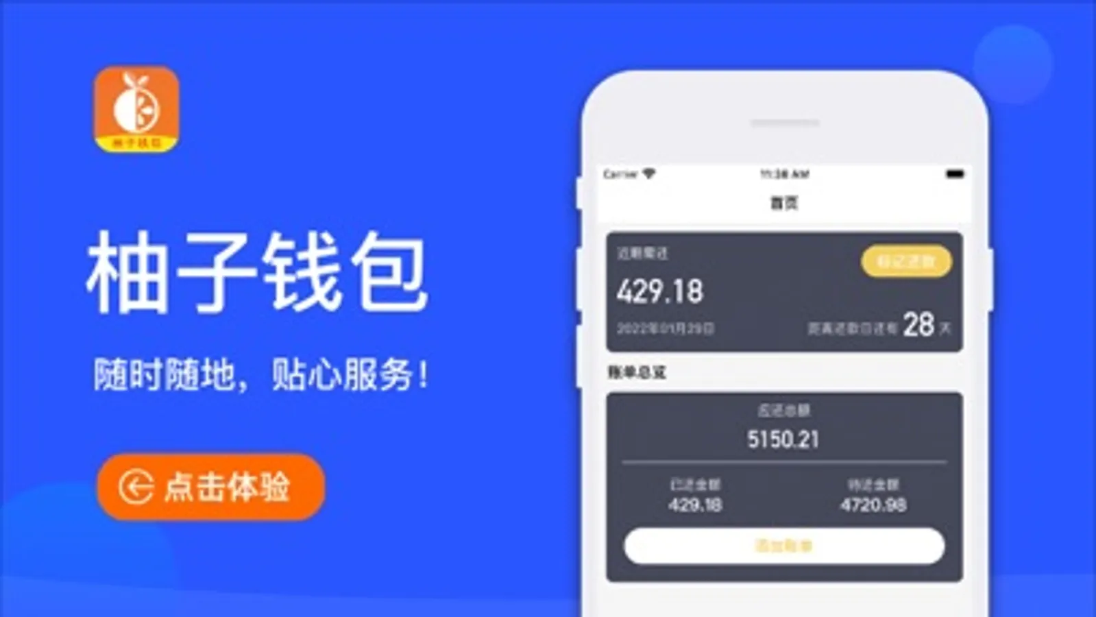 柚子钱包,一款账单记录、计算、还款提醒工具App