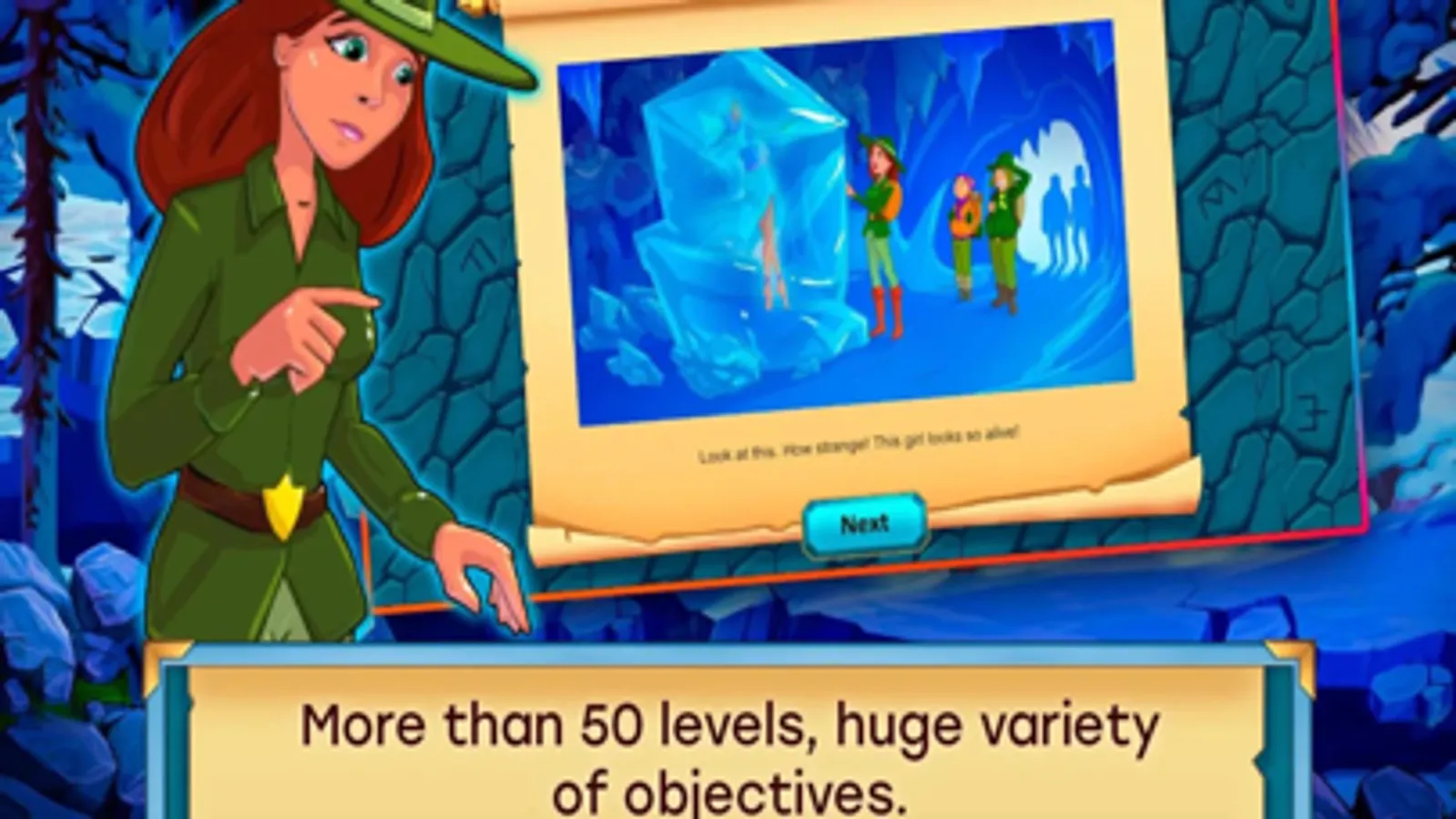 An archaeological expedition risks turning into a tragedy! During her excavations, Claire and her friends have found a cave within which the Ice Queen lay, deep in a strange sleep. When they found her, the spell was lifted and the girl awoke. She thought the archaeologists had robbed her, and decided to find her treasure and freeze the entire world. Claire and her companions must find the artifacts first.