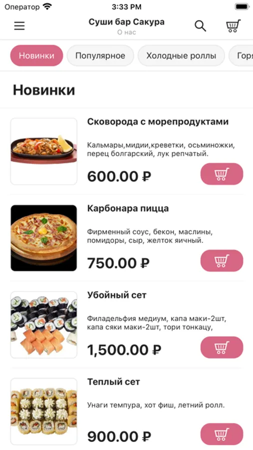 - Пицца, роллы, холодные и горячие блюда, десерты, напитки – мы осуществляем доставку всех блюд.