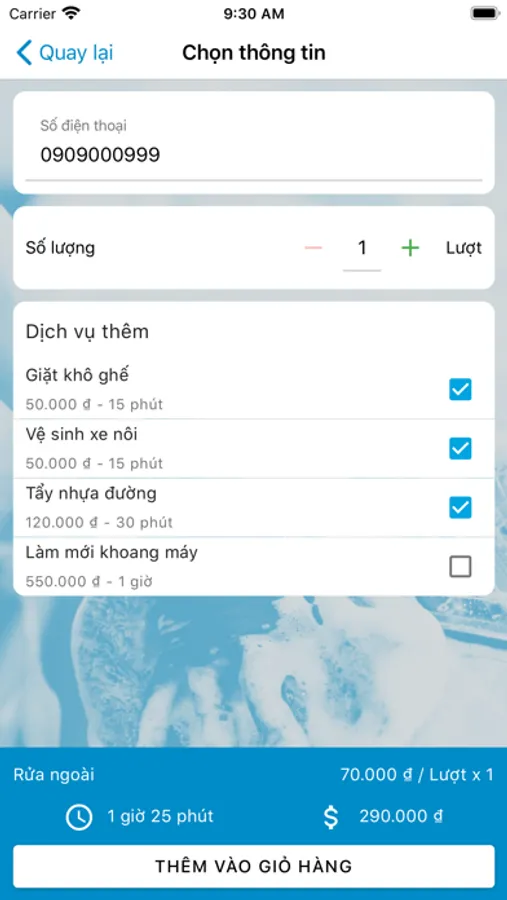 - Đặt dịch vụ rửa xe tận nơi đơn giản, nhanh chóng