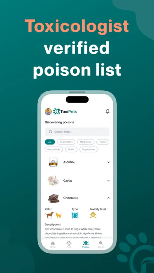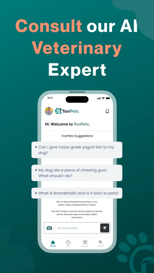 ToxiPets combines an AI-powered camera with veterinary expertise to keep your pets safe. Simply take a picture or search our database of thousands of toxins to determine what is safe for your pet to eat. Try ToxiPets for FREE today!