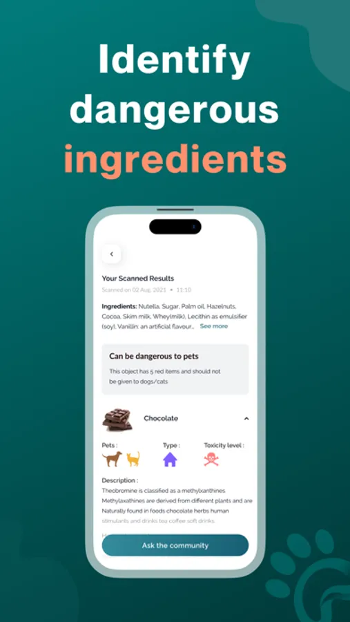 ● Easy-to-use camera interface – ToxiPets uses your camera and AI to determine what the substance in question is.