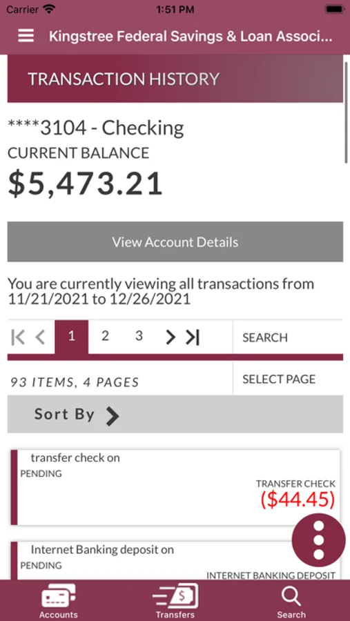 Transfer funds between Kingstree Federal Accounts