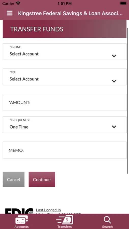 Make transfers to or from non-Kingstree Federal accounts