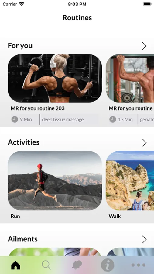 -Choose routines from the following massage routine categories: For you, Activities, Ailments, Lifestyle, Sports, Target Areas, Wellness, and Workout.