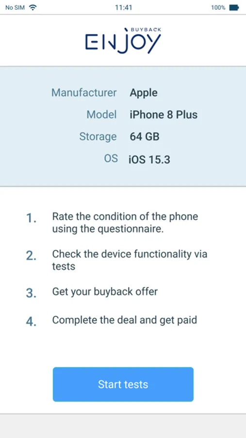 Enjoy BuyBack è la prima App che diagnostica lo stato del tuo vecchio smartphone, laptop o tablet in tempo reale: in un solo minuto l’App analizzerà lo stato del tuo dispositivo ed effettuerà una prima valutazione economica.