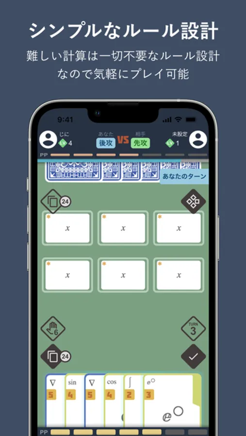 ・ラプラシアンゲームは様々な演算子カードを使って相手の「x」(キャラクター)を全て0または無限大に発散させることで勝敗が決定します。
