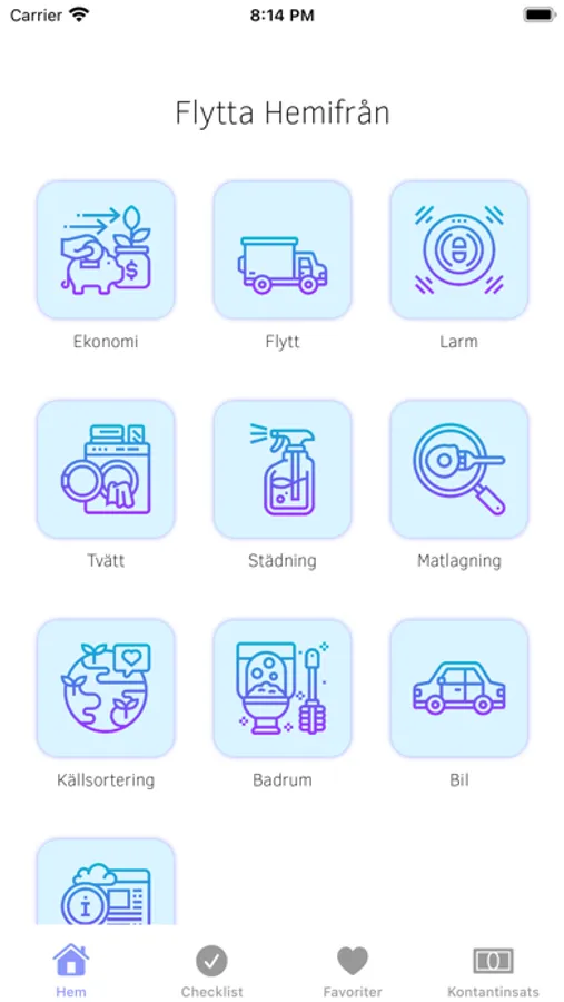Flytta Hemifrån är en app som kommer hjälpa dig vid din första flytt. Det är mycket att hålla koll på och minst sagt att veta. Denna app skapades för att underlätta och göra dig mer självständig innan, under och efter flytten. Appen är fylld med tips, fakta och rådgivning.