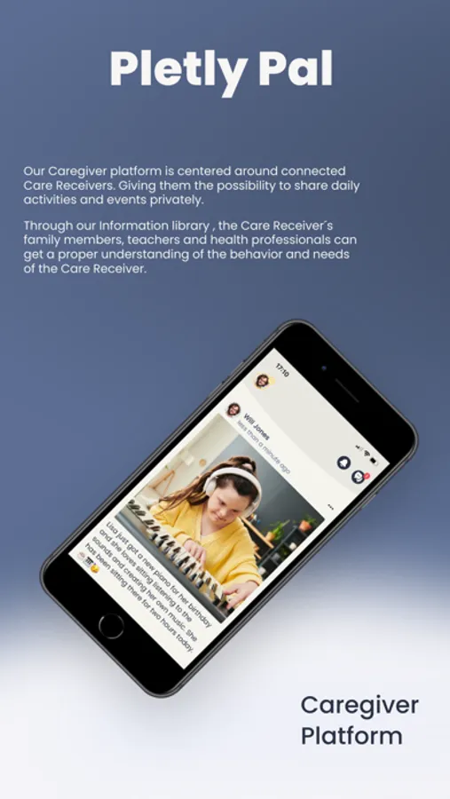 Pletly is a holistic and person-centric ecosystem for next generation assistive technology applications. Pletly Pal is the ecosystem nerve center and functions as a caregiver platform focusing on frictionless communication and seamless administration of assistive technology. Pletly Pal enables easy communication between professional and family caregivers, assisted living housing and schools. In addition, it includes extended family and friends in the life of the care receiver.