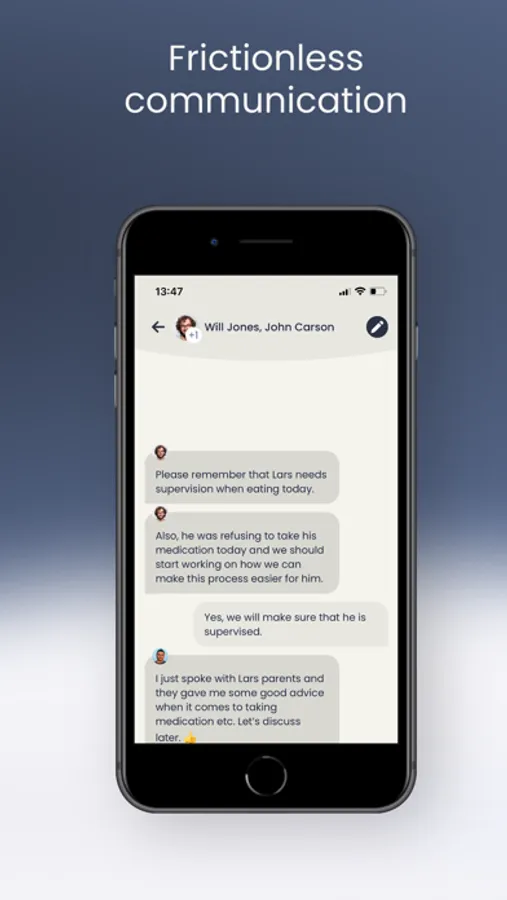 It is important to be able to easily communicate and coordinate directly with other connected caregivers. Therefore we have created our own messaging functionality inside Pletly Pal where you can communicate with all other connected caregivers through both one-to-one chat and group chats.