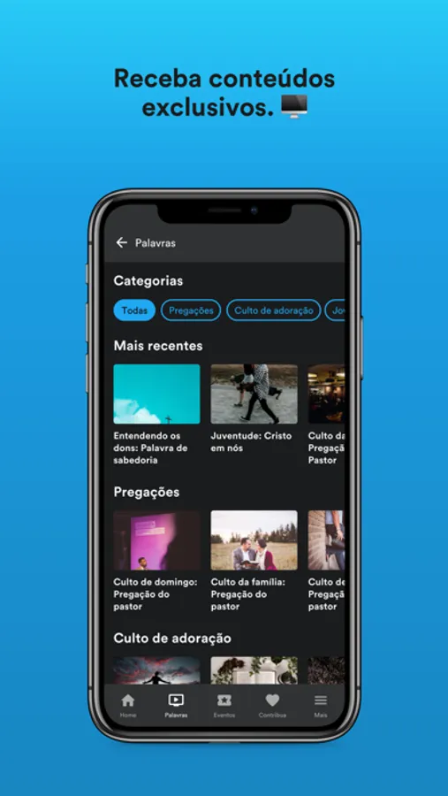 - Siga a agenda e fique por dentro de tudo que acontece na igreja, inscreva-se em eventos e tenha seus ingressos sempre com você.
