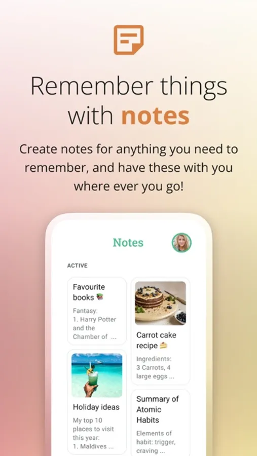 • Create notes to keep your thoughts and ideas organised, and keep your mind uncluttered