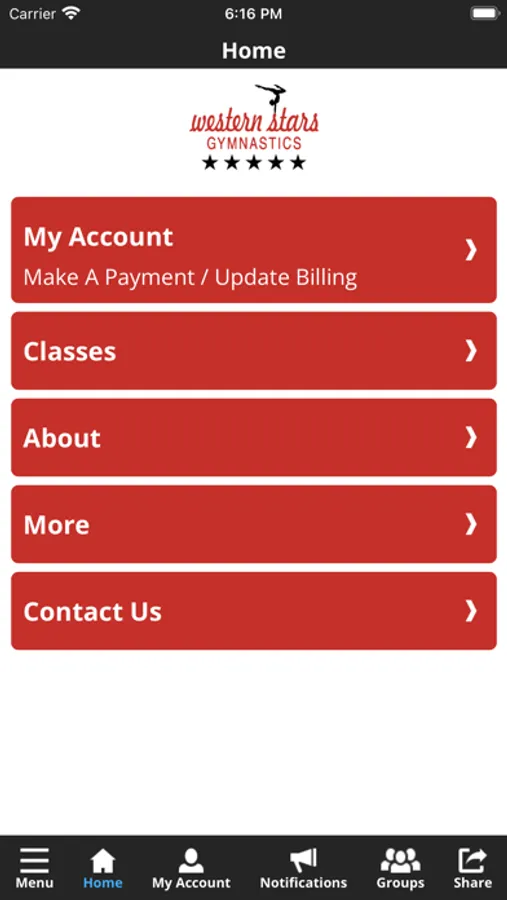 The Western Stars Gymnastics app allows you to manage your account with ease, register for classes, parties, and special events. You'll also receive important notifications about class changes, closings, registration openings, special announcements, and upcoming events.