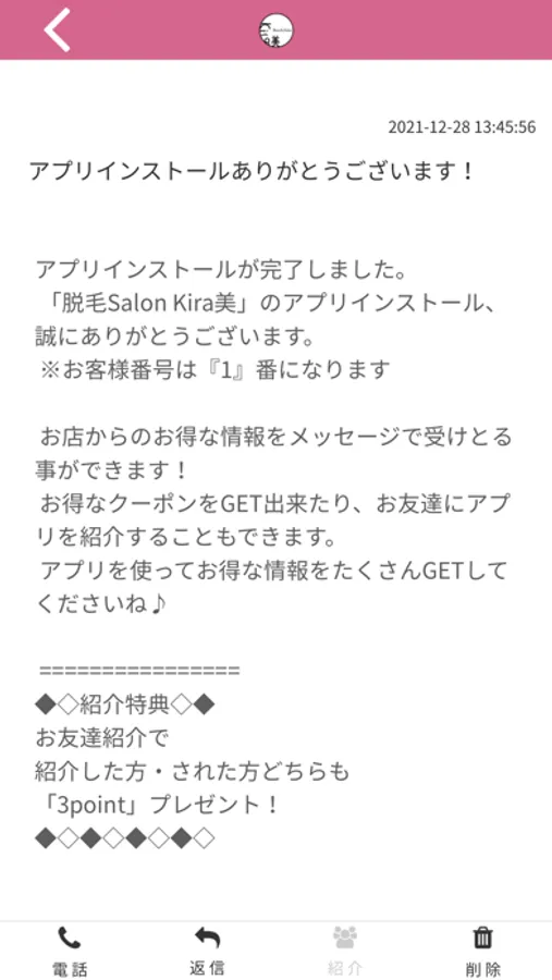 Kira美のアプリをSNSを通じてお友達に紹介する事ができます。