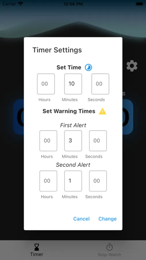 - Warning intervals are fully customisable to fit your needs. The app notifies you of the different intervals by changing the color of the background and gives off a sound to help you manage your time