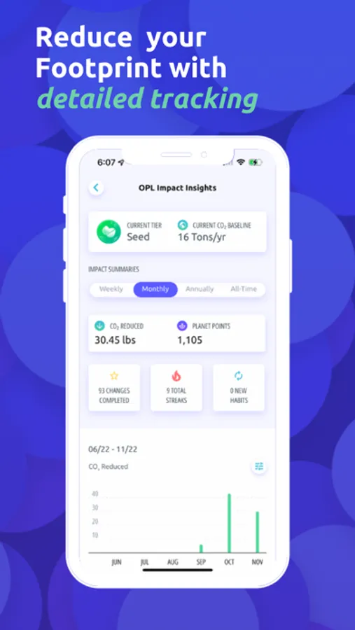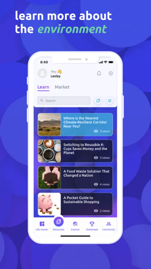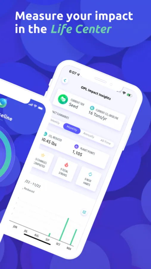 When you use One Planet Life, you will be supported and motivated throughout your journey. Daily motivational messages encourage you on your journey and remind you why your actions matter for the environment. The LifeCenter shows your progress toward reducing your carbon footprint. You can also see how many joyful changes you have completed, celebrate your streaks, and see the new habits you have achieved.