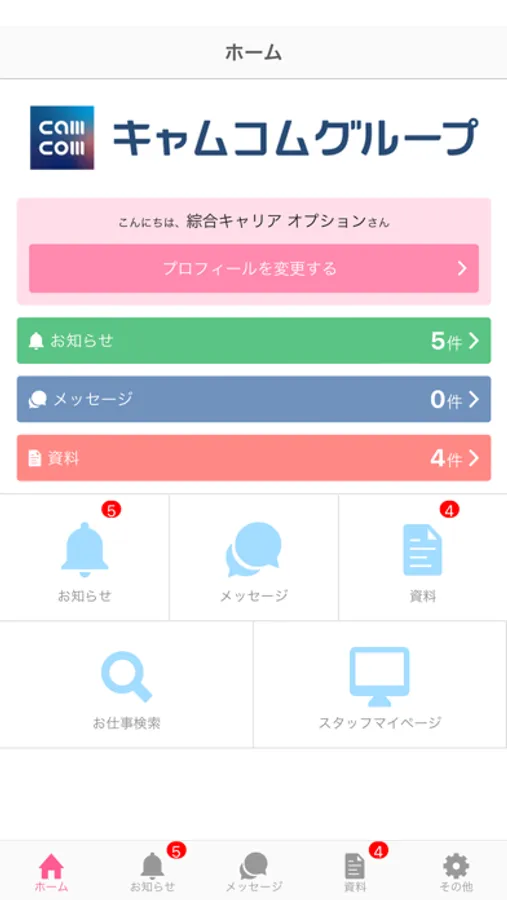 お知らせや資料の閲覧、メッセージによるチャット機能などがあります。