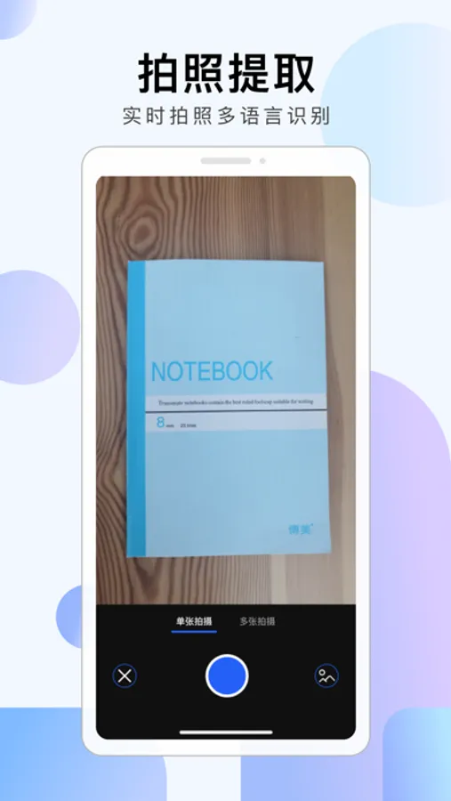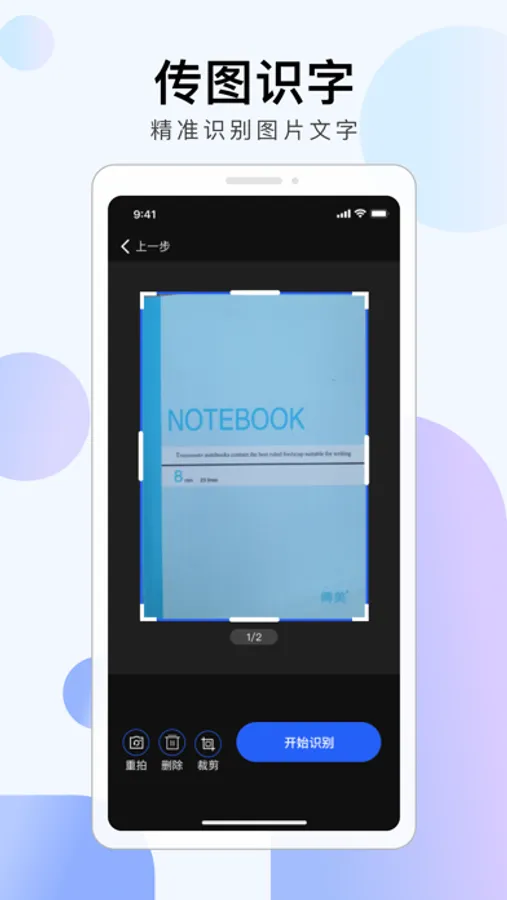 【文字识别】高效精准识别,准确识别率高达99.9%,即拍即转,可快速识别出图片中的文字,操作简单直观。